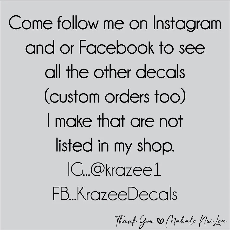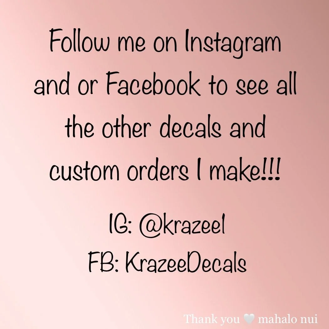 Shop Categories: All Uchinanchu Flower Lei etc... Fonts for names and/or words Disney inspired SuperHeroes Animals Toki Doki inspired All | Uchinanchu | Flower Lei etc... | Fonts for names and/or words | Disney inspired | SuperHeroes | Animals | Toki Doki inspired | your name/word in this cool graffiti font from $5.49 Your name or word in this cute cursive/script font from $5.49 Old English font vinyl decals for names or words or short phrases... from $5.49 Hajichi - Hanagasa - Uchinanchu from $9.49 Toki doki inspired ADIOS layered vinyl decal from $7.99 何TF | WTF vinyl cut decals from $5.99 cute PANDA layered vinyl decal • choose either standing or laying down panda from $8.49 Cute baby avengers | baby superheroes inspired layered decals from $8.99 single (2"x2") or strip (2"x7") of PLUMERIA flowers cut in vinyl decals from $3.49 Cute duck vinyl decal from $7.99 Your name or word (up to 8 letters) with your choice of up to four disney Tsum tsums and/or character heads inspired vinyl decal... from $23.99 Ai ~ LOVE in kanji in vinyl decal from $4.99 Buy 1 get one free. Same size same color. Stethoscope vinyl decal from $5.99 Disney inspired tsumtsum layered vinyl decals. READ DETAILS PLEASE. from $7.49 choose 3"x8" or 3"x7" or 2.5 inches single TIARE flowers cut in vinyl decals from $3.99 MONSTERA vinyl decal from $8.99 Toki doki's sakura unicorno inspired vinyl decal!!! from $9.99 Origami Crane vinyl decal from $5.99 Layered 2.6”x7” SAKURA • CHERRY BLOSSOM vinyl cut decals $10.99 white Lotus or pink and green Lotus vinyl decal from $4.99 Cute SuperHeroes inspired vinyl decals for your hydroflask or swell bottle or almost anything else!!! from $8.40 Lokelani (flower of Maui) lei strip vinyl cut decal from $10.99 Hula dancing LILO and/or STITCH inspired vinyl cut decals from $9.49 Your choice of 3 or 4 Disney's tsum tsum stacked inspired vinyl decal... from $17.49 Aloha with Hibiscus vinyl decal from $5.99 Cherry blossoms (sakura) with name decals to personalize your water bottle... from $18.99 my cute little KRAZEE BOBA vinyl decal from $7.99 Maile lei and/or Maile w/Pikake Lei vinyl cut decals from $9.49 PUA inspired layered and cut vinyl decal from $8.99 Receive 2 hand drawn heart vinyl cut decal for the listed cost!!! from $3.99 Cute UNICORN vinyl decal from $8.49 Skeleton Shaka | skeletal Shaka | outline or not | vinyl cut decal not layered from $5.99 Cherry blossoms • Sakura vinyl decal sheet from $8.49 Layered 2.4”x6” SAKURA • CHERRY BLOSSOM vinyl cut decals $9.99 Puakenikeni Lei & Pikake Lei strands twisted vinyl cut decals from $15.99 Pakalana Lei strip • vinyl cut decal from $7.99 Flip flops ~ slippers ~ rubbah slippahs - rubber slippers vinyl decals from $2.49 Hibiscus vinyl decal from $2.49 Puakenikeni lei strip vinyl cut decal from $7.49 cute SHARK or TURTLE vinyl cut and layered decals from $6.49 Pikake Lei strip • vinyl cut decals from $7.49 Toki Doki Donutella inspired vinyl decal from $9.49 Sea turtle/honu vinyl decal for almost anything from $5.49 Toki Doki's Mozzarella without or with gun inspired vinyl decal from $8.49 KRAZEE hanagasa from $9.49 Kokeshi with a Hanagasa vinyl layered and cut decal from $9.49 cute Sloth vinyl cut decal from $8.49 Pineapple | vinyl cut and layered decals from $8.49 Fox inspired vinyl decal from $9.48 American Flag vinyl decal from $6.99 Kawaii Kokeshi doll with Sakura Kimono vinyl decal from $8.49 aloha SHAKA vinyl decals • read description below please~don't want aloha in there just ask =) from $3.49 cute baby SPIDERMAN vinyl cut decal from $8.49